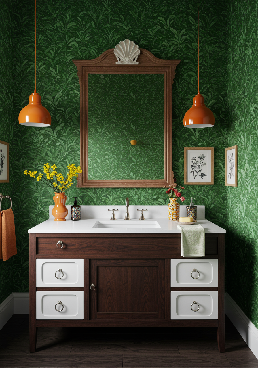 If you’re ready to “go bold,” separated spaces like laundry and powder rooms are great places to start. It’s easier to incorporate busy wallpaper or a bright wall color in an enclosed area because it doesn’t have to flow with the rest of your decor.